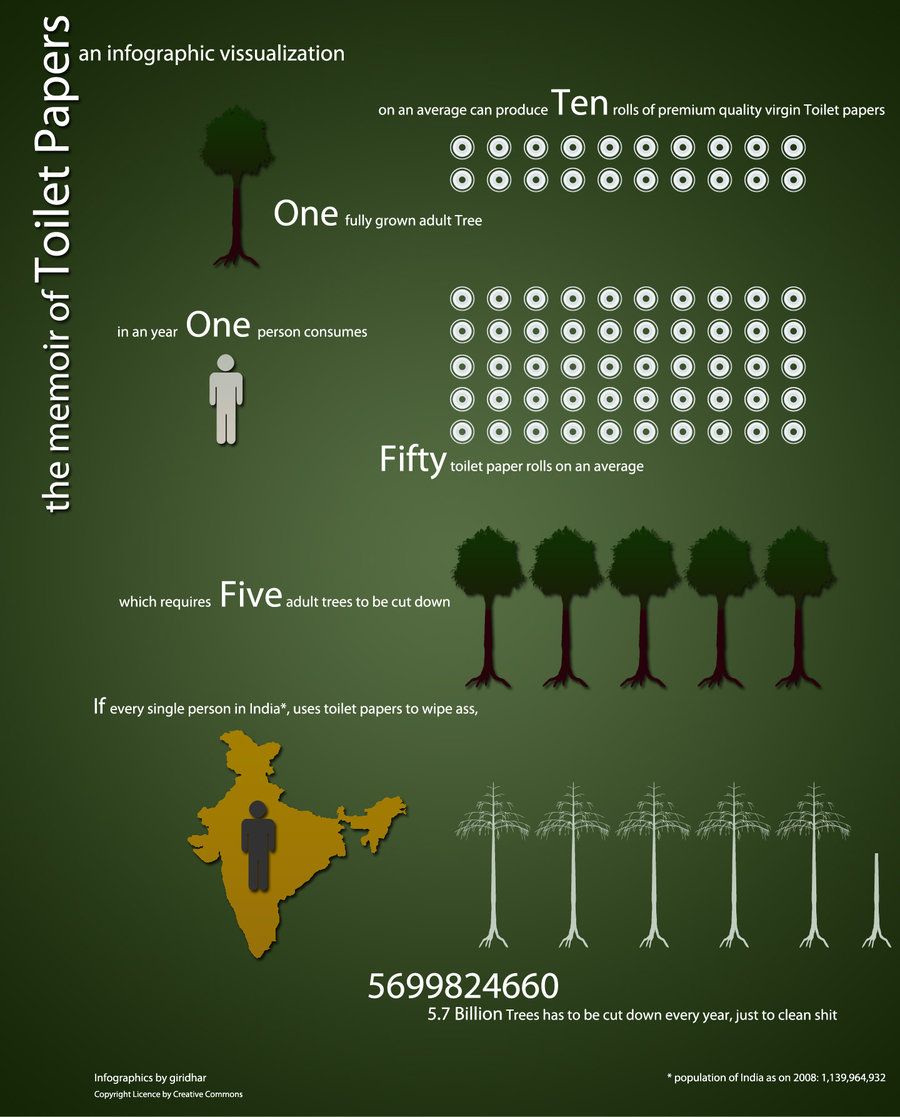- Worldwide, 270,000 trees are cut down every day just for toilet paper. Any reduction in this would be a huge help to the environment.