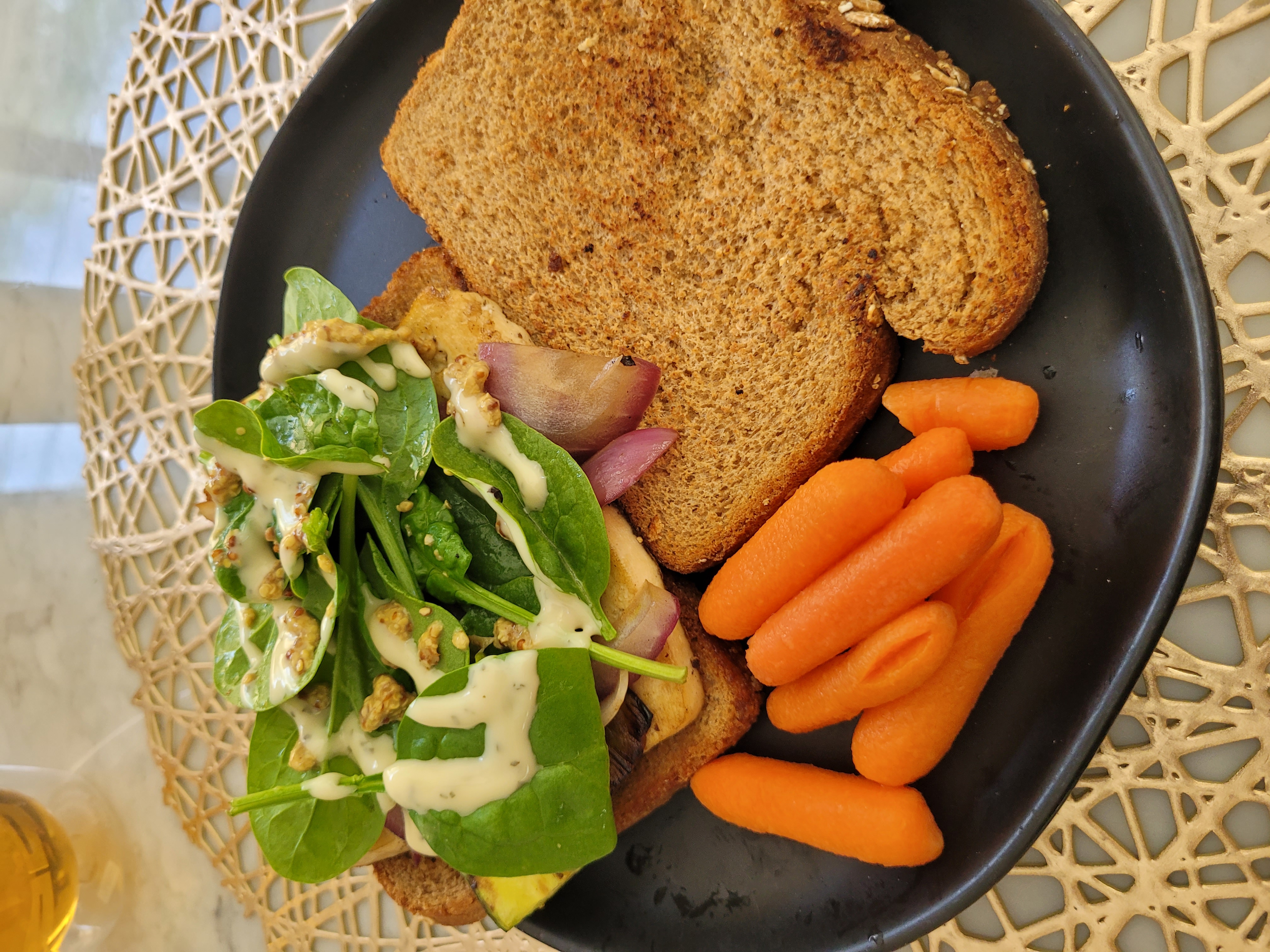 To be honest, the best textures in a sandwich to me come from having a good bread and crisp veggies. And while I did try a fully raw veggie sandwich at one point, I think my favorites are the ones that had a cooked component. Sometimes that was the tofu, pan-seared with some sesame oil or BBQ sauce. Other times it was grilled onions and mushrooms in olive oil with some Italian seasoning, salt, and pepper.
