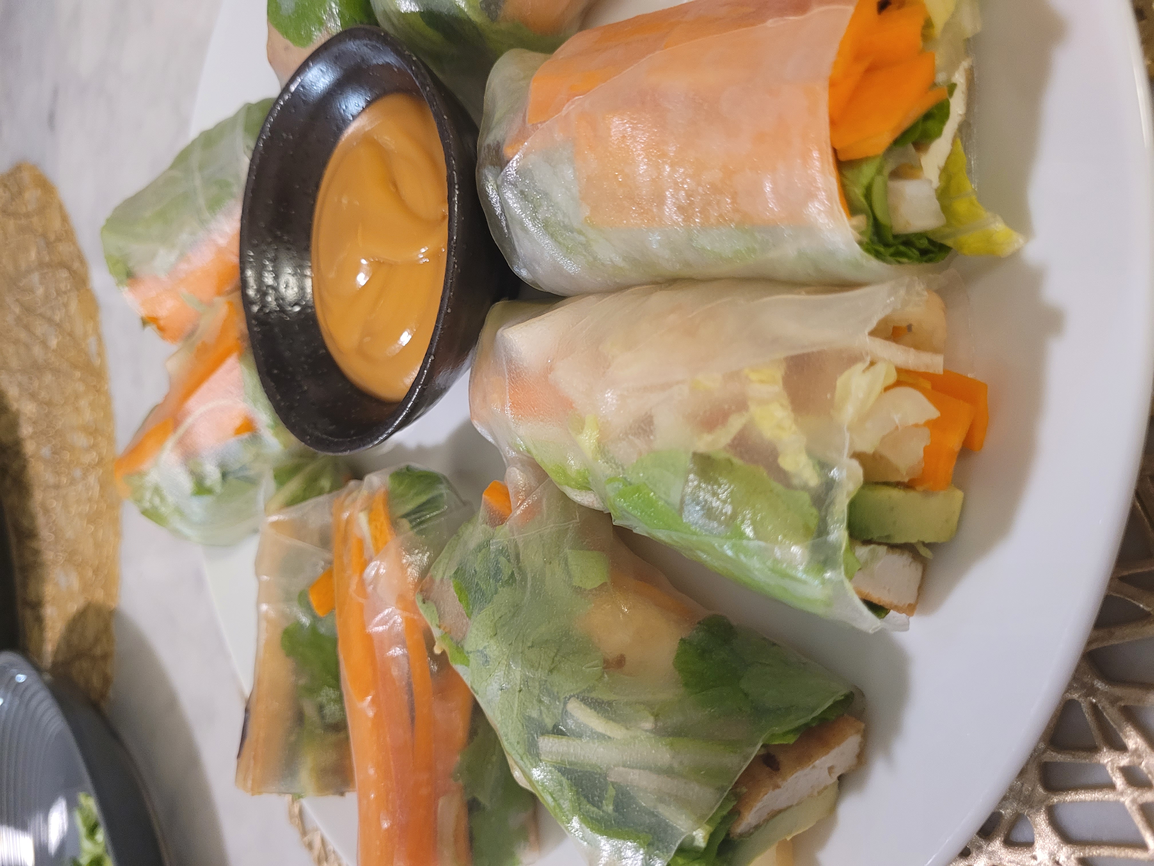 Honestly, once you figured out the right timing for the rice paper, it's pretty hard to mess these up. They were just as tasty as the ones you get from a restaurant, though they didn't look nearly as nice. A tighter wrap would've definitely given them a better texture, but the flavor came mostly from the peanut sauce.