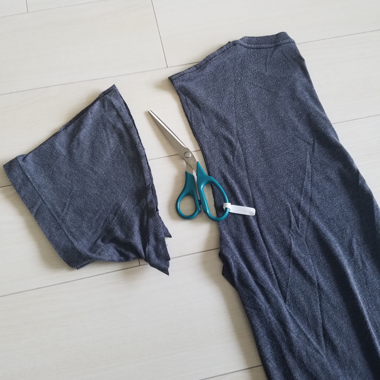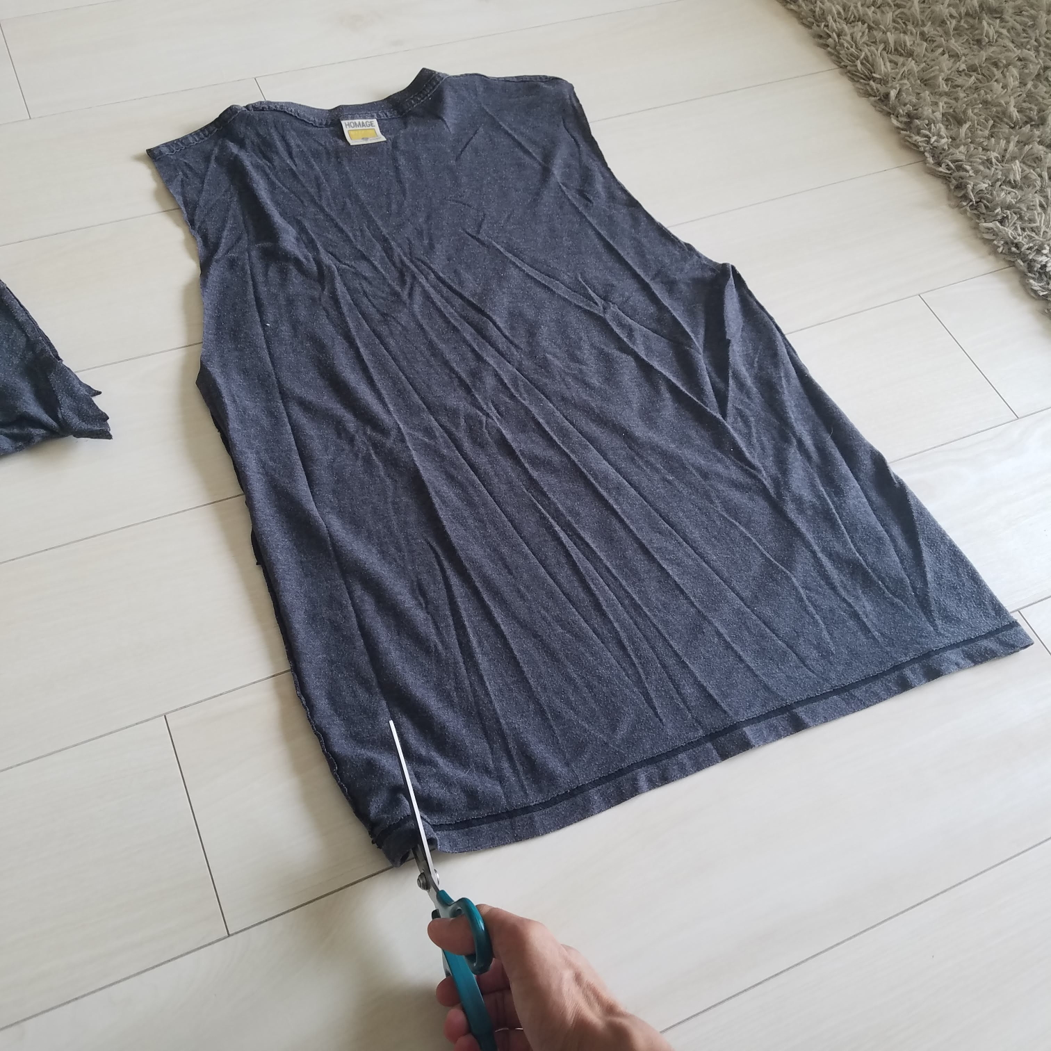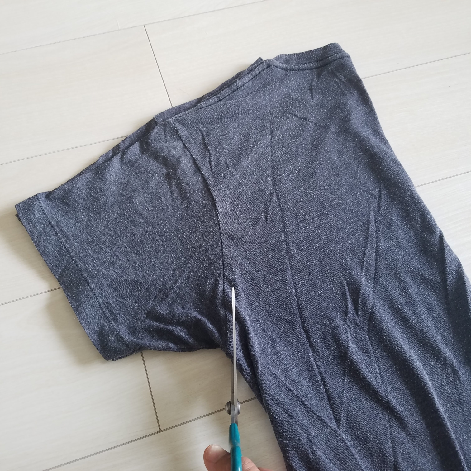 Step 2: Fold the shirt in half and cut off the sleeves.