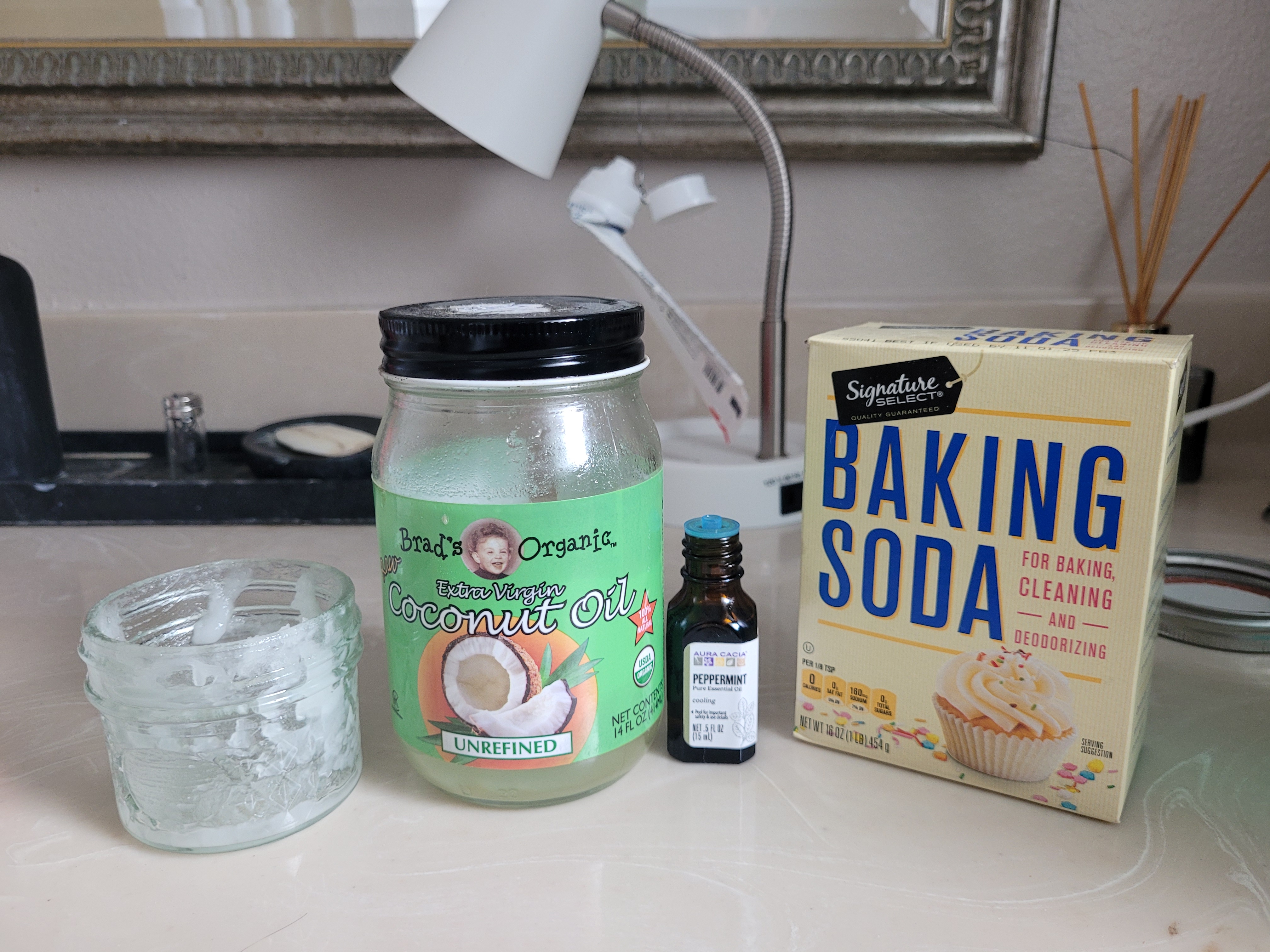 Once I committed to never using toothpaste in plastic anymore, I did a little Google search and came across this video which made me realize how stupidly easy it is: baking soda, coconut oil, and some peppermint essential oil.