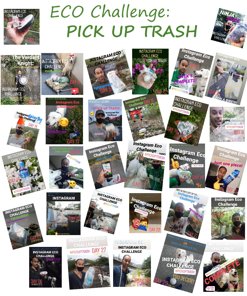 I take her for a walk through the neighborhood, to the river, or to the local park every day, so there was no shortage of trash for me to pick up. Also, to force myself not to miss a day, I added an additional challenge: log the trash I pick up on Instagram.